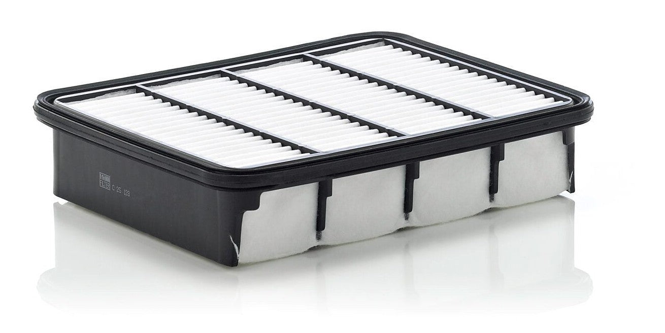 High-quality MANN-FILTER air filters for clean air intake and optimum protection for your engine, mass air flow sensor & other sensitive components / They meet requirements of modern engine technology. Highest dirt holding capacity and dirt separation efficiency, low flow resistance and high pleat stability ensure functional reliability during the entire service interval.