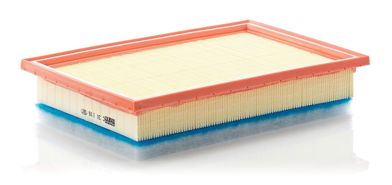 High-quality MANN-FILTER air filters for clean air intake and optimum protection for your engine, mass air flow sensor & other sensitive components / They meet requirements of modern engine technology. Highest dirt holding capacity and dirt separation efficiency, low flow resistance and high pleat stability ensure functional reliability during the entire service interval.