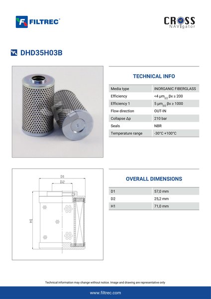 Genuine Filtrec DHD35H03B. This Filtrec element is designed to meet or exceed the quality and performance of brand OEM’s ensuring superior filtration performance and long-lasting durability.
