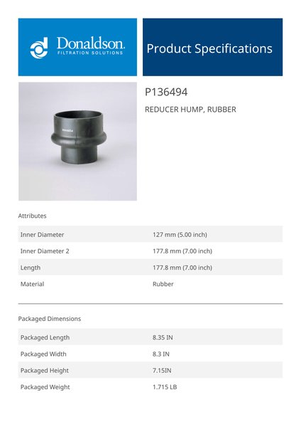 Genuine Donaldson P136494 Reducer Hump, Rubber is designed to provide reliable performance in reducer hump, rubber applications. Built with high-quality materials, it ensures consistent functionality and durability.