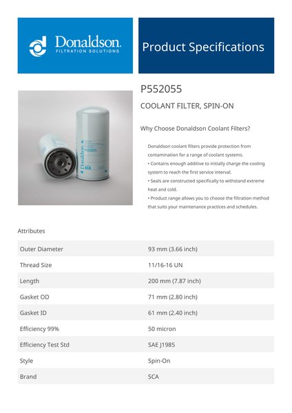 Donaldson P552055 Coolant Filter, Spin-On | Replaces the CMI 004013121038