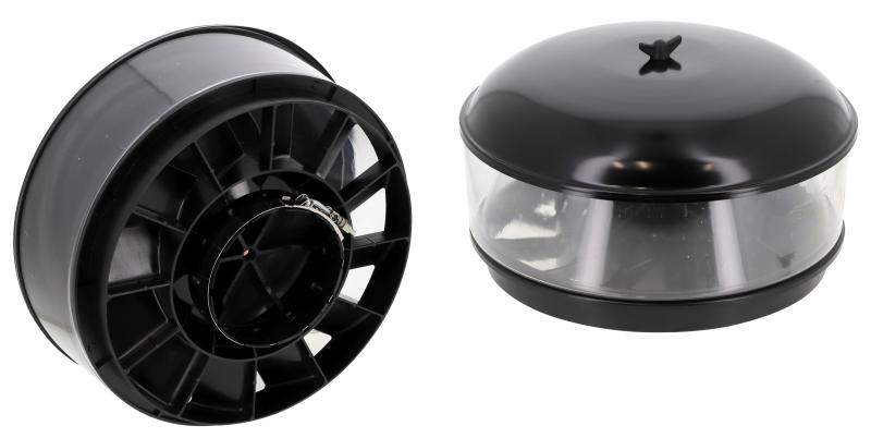 • Centrifugal force in bowl separates up to 75% of incoming dust before it enters an engine air intake system.