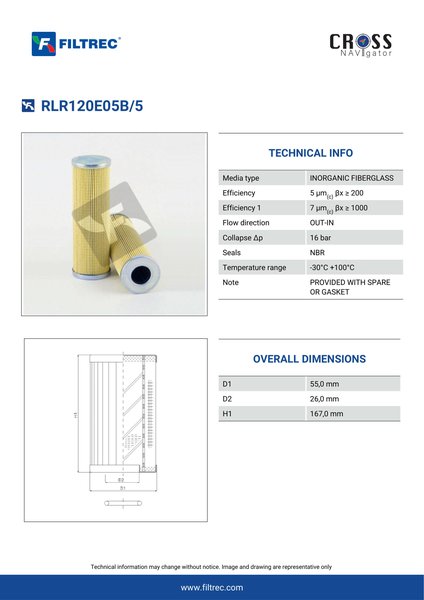 Genuine Filtrec RLR120E05B/5. This Filtrec element is designed to meet or exceed the quality and performance of brand OEM’s ensuring superior filtration performance and long-lasting durability.