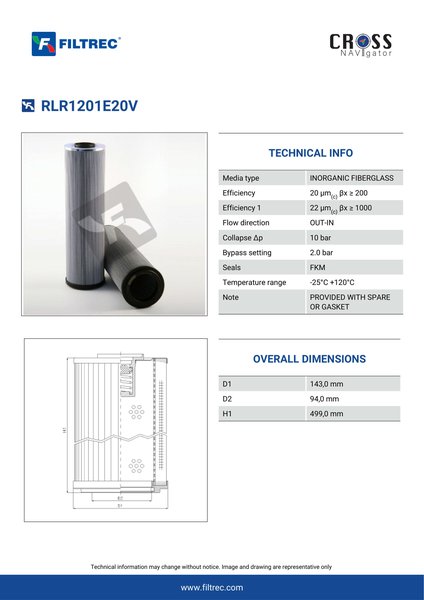 Engineered with their high performance media and a durable design, the RLR1201E20V provides reliable and consistent performance over its lifespan, even in harsh operating environments. When you order from FilterFinder, you can trust that you are getting a reliable and high-quality replacement filter that will keep your system running smoothly.