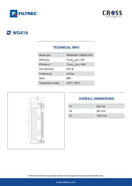 Genuine Filtrec WG416. This Filtrec element is designed to meet or exceed the quality and performance of brand OEM’s ensuring superior filtration performance and long-lasting durability.