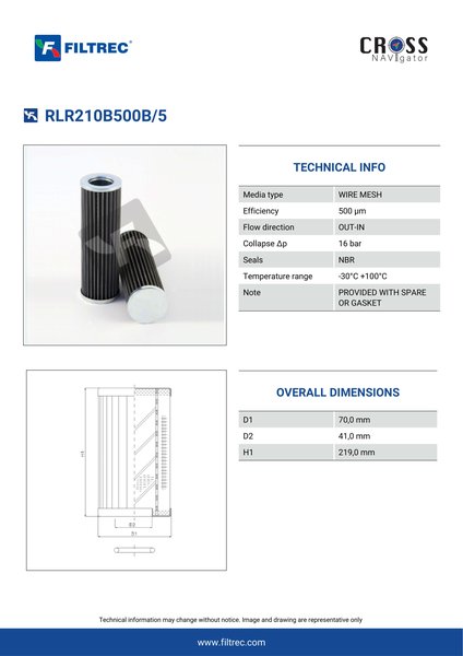 Genuine Filtrec RLR210B500B/5. This Filtrec element is designed to meet or exceed the quality and performance of brand OEM’s ensuring superior filtration performance and long-lasting durability.