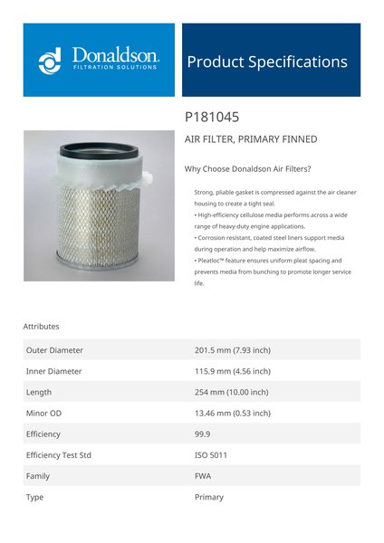 The efficiency of the element is shown using the Micron (µ) and Beta (β) ratings. The micron rating indicates the size of the particle being filtered and the beta rating the efficiency, calculated as 1/β.