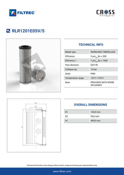 Genuine Filtrec RLR1201E05V/5. This Filtrec element is designed to meet or exceed the quality and performance of brand OEM’s ensuring superior filtration performance and long-lasting durability.