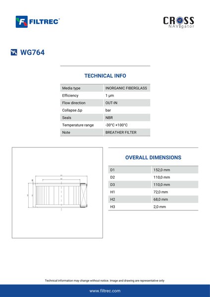 Engineered with their high performance media and a durable design, the WG764 provides reliable and consistent performance over its lifespan, even in harsh operating environments. When you order from FilterFinder, you can trust that you are getting a reliable and high-quality replacement filter that will keep your system running smoothly.