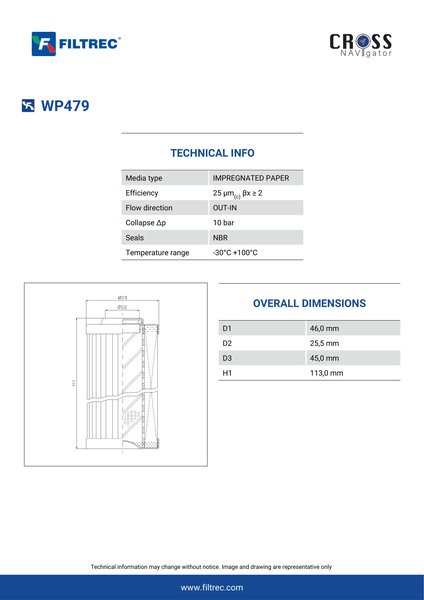 Engineered with their high performance media and a durable design, the WP479 provides reliable and consistent performance over its lifespan, even in harsh operating environments. When you order from FilterFinder, you can trust that you are getting a reliable and high-quality replacement filter that will keep your system running smoothly.