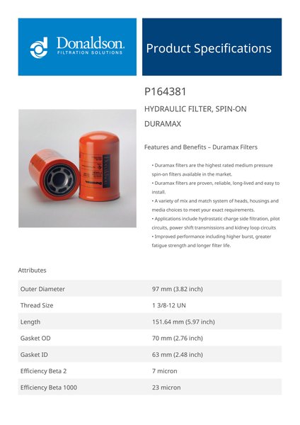 Donaldson P164381 Hydraulic Filter, Spin-On Duramax | Replaces the Loesing 020033