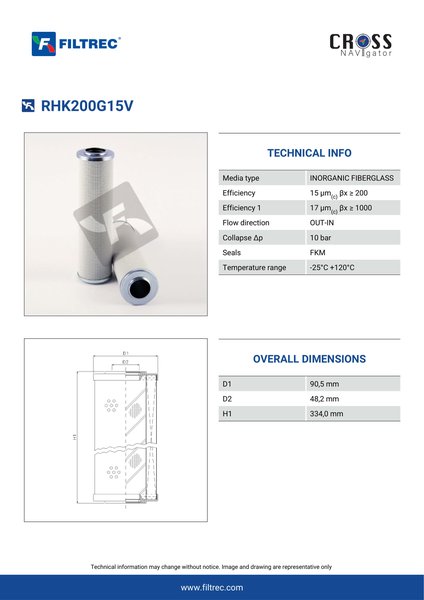 Engineered with their high performance media and a durable design, the RHK200G15V provides reliable and consistent performance over its lifespan, even in harsh operating environments. When you order from FilterFinder, you can trust that you are getting a reliable and high-quality replacement filter that will keep your system running smoothly.