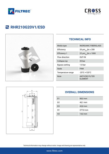 The efficiency of the element is shown using the Micron (µ) and Beta (β) ratings. The micron rating indicates the size of the particle being filtered and the beta rating the efficiency, calculated as 1/β.