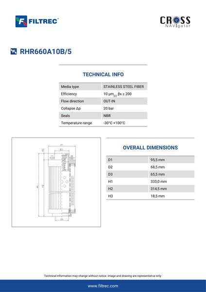 Engineered with their high performance media and a durable design, the RHR660A10B/5 provides reliable and consistent performance over its lifespan, even in harsh operating environments. When you order from FilterFinder, you can trust that you are getting a reliable and high-quality replacement filter that will keep your system running smoothly.