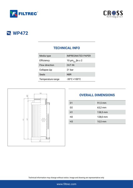 Genuine Filtrec WP472. This Filtrec element is designed to meet or exceed the quality and performance of brand OEM’s ensuring superior filtration performance and long-lasting durability.