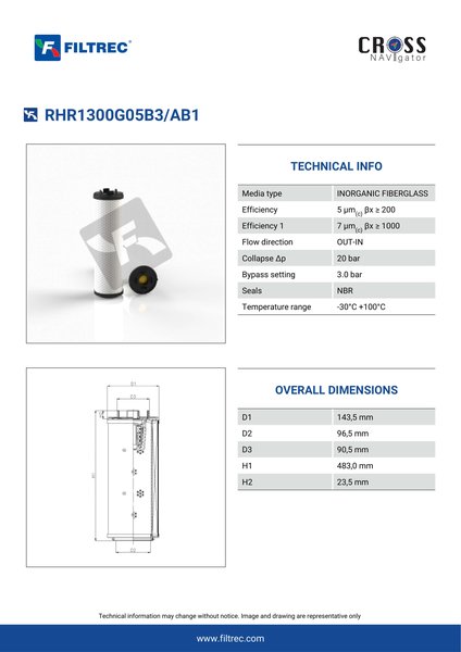 Genuine Filtrec RHR1300G05B3/AB1. This Filtrec element is designed to meet or exceed the quality and performance of brand OEM’s ensuring superior filtration performance and long-lasting durability.