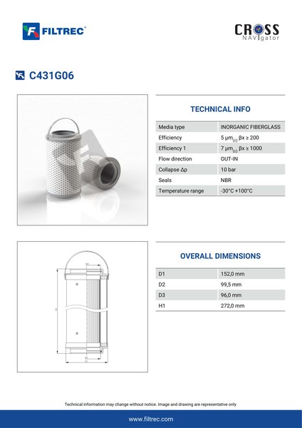 Engineered with their high performance media and a durable design, the C431G06 provides reliable and consistent performance over its lifespan, even in harsh operating environments. When you order from FilterFinder, you can trust that you are getting a reliable and high-quality replacement filter that will keep your system running smoothly.