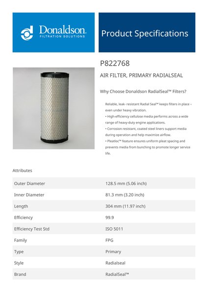 Why Choose Donaldson RadialSeal™ Filters?Reliable, leak- resistant Radial Seal™ keeps filters in place – even under heavy vibration.