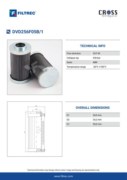 Engineered with their high performance media and a durable design, the DVD256F05B/1 provides reliable and consistent performance over its lifespan, even in harsh operating environments. When you order from FilterFinder, you can trust that you are getting a reliable and high-quality replacement filter that will keep your system running smoothly.