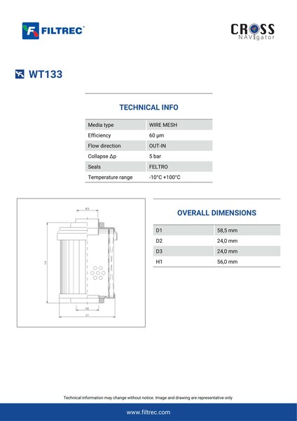 Engineered with their high performance media and a durable design, the WT133 provides reliable and consistent performance over its lifespan, even in harsh operating environments. When you order from FilterFinder, you can trust that you are getting a reliable and high-quality replacement filter that will keep your system running smoothly.
