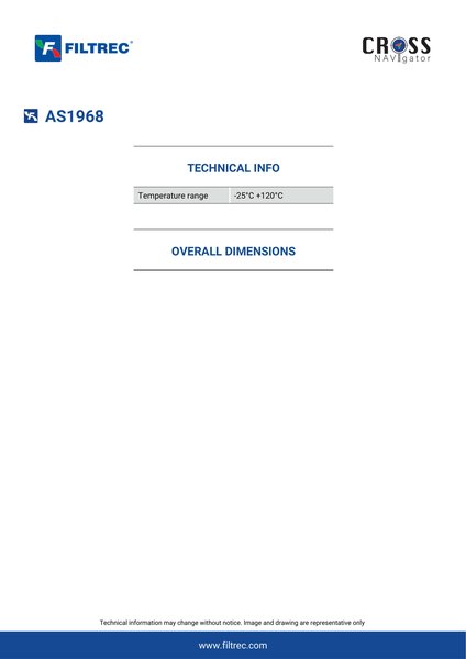 Genuine Filtrec AS1968. This Filtrec element is designed to meet or exceed the quality and performance of brand OEM’s ensuring superior filtration performance and long-lasting durability.