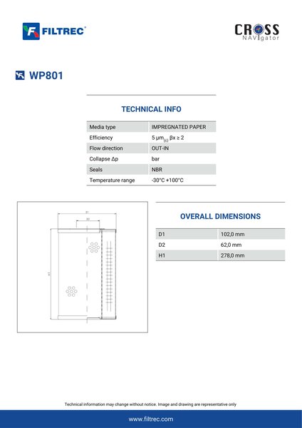 Genuine Filtrec WP801. This Filtrec element is designed to meet or exceed the quality and performance of brand OEM’s ensuring superior filtration performance and long-lasting durability.