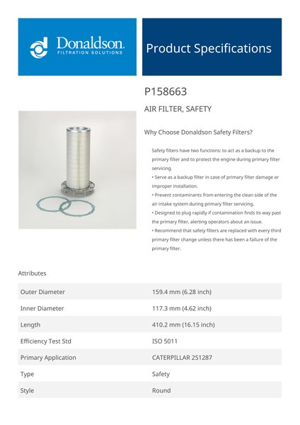 Why Choose Donaldson Safety Filters?Safety filters have two functions: to act as a backup to the primary filter and to protect the engine during primary filter servicing.