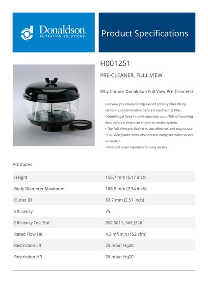 Why Choose Donaldson Full-View Pre-Cleaners?Full-View pre-cleaners help extend primary filter life by removing contamination before it reaches the filter.