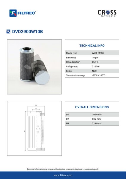 Genuine Filtrec DVD2900W10B. This Filtrec element is designed to meet or exceed the quality and performance of brand OEM’s ensuring superior filtration performance and long-lasting durability.