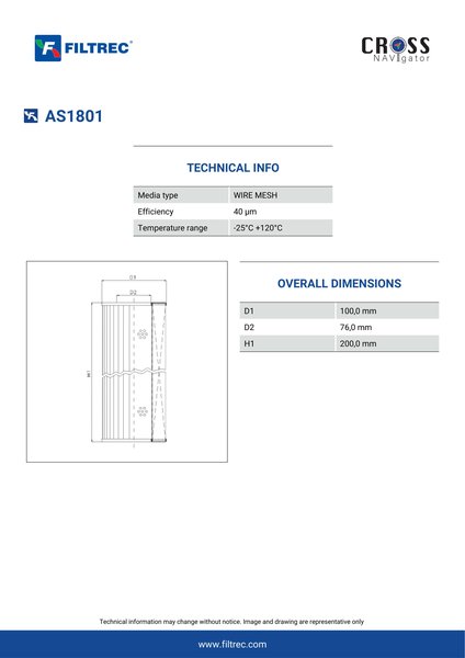 Genuine Filtrec AS1801. This Filtrec element is designed to meet or exceed the quality and performance of brand OEM’s ensuring superior filtration performance and long-lasting durability.