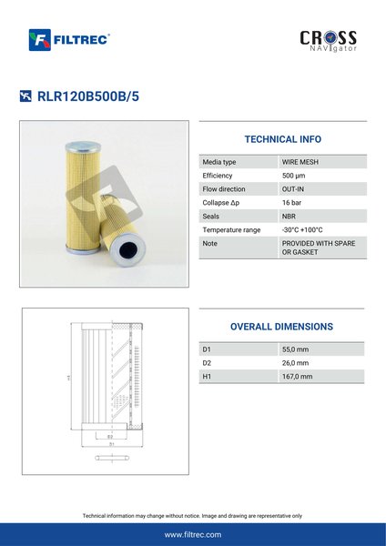 Filtrec RLR120B500B/5 Replaces the Internormen 300134