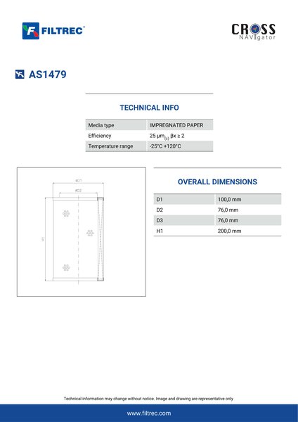 Genuine Filtrec AS1479. This Filtrec element is designed to meet or exceed the quality and performance of brand OEM’s ensuring superior filtration performance and long-lasting durability.