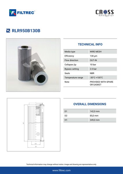 Genuine Filtrec RLR950B130B. This Filtrec element is designed to meet or exceed the quality and performance of brand OEM’s ensuring superior filtration performance and long-lasting durability.