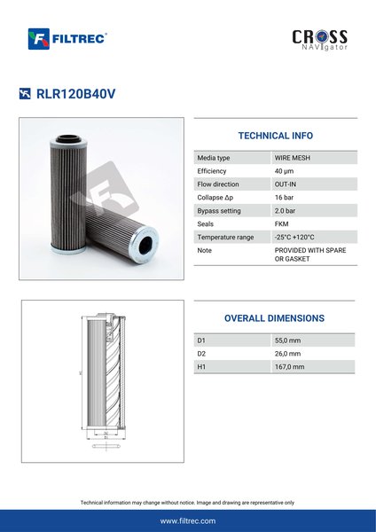 Engineered with their high performance media and a durable design, the RLR120B40V provides reliable and consistent performance over its lifespan, even in harsh operating environments. When you order from FilterFinder, you can trust that you are getting a reliable and high-quality replacement filter that will keep your system running smoothly.