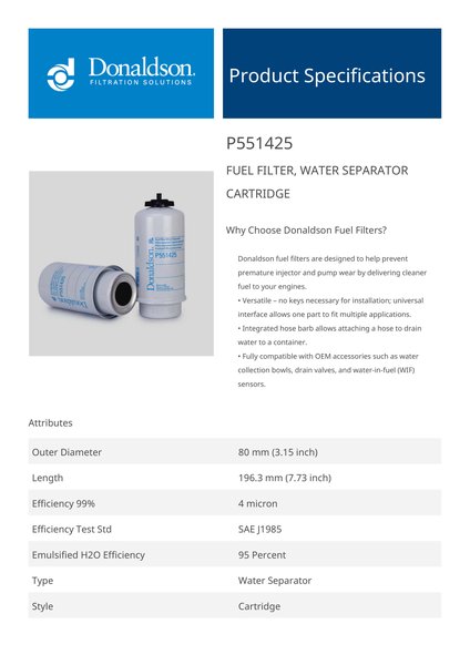 Why Choose Donaldson Fuel Filters?Donaldson fuel filters are designed to help prevent premature injector and pump wear by delivering cleaner fuel to your engines.