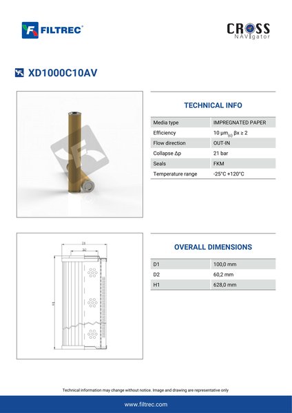 Genuine Filtrec XD1000C10AV. This Filtrec element is designed to meet or exceed the quality and performance of brand OEM’s ensuring superior filtration performance and long-lasting durability.