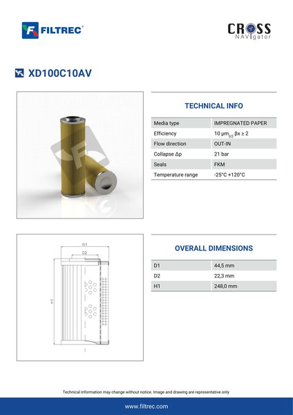 Genuine Filtrec XD100C10AV. This Filtrec element is designed to meet or exceed the quality and performance of brand OEM’s ensuring superior filtration performance and long-lasting durability.