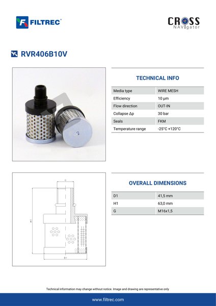 Engineered with their high performance media and a durable design, the RVR406B10V provides reliable and consistent performance over its lifespan, even in harsh operating environments. When you order from FilterFinder, you can trust that you are getting a reliable and high-quality replacement filter that will keep your system running smoothly.