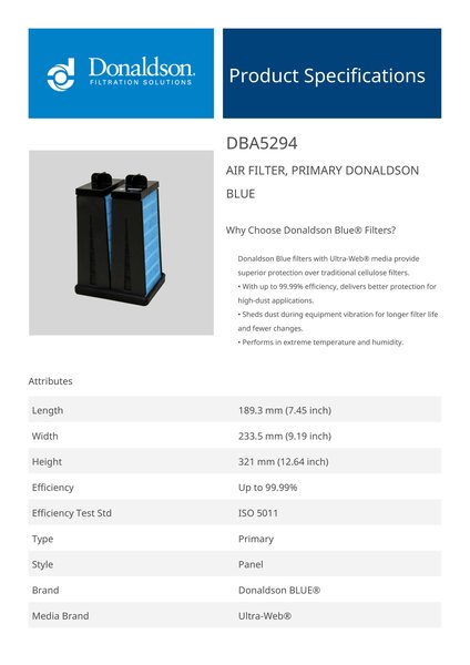 Why Choose Donaldson Blue® Filters?Donaldson Blue filters with Ultra-Web® media provide superior protection over traditional cellulose filters.