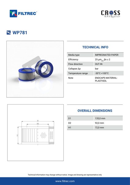 Genuine Filtrec WP781. This Filtrec element is designed to meet or exceed the quality and performance of brand OEM’s ensuring superior filtration performance and long-lasting durability.