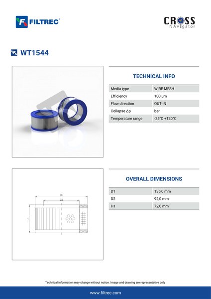 The efficiency of the element is shown using the Micron (µ) and Beta (β) ratings. The micron rating indicates the size of the particle being filtered and the beta rating the efficiency, calculated as 1/β.