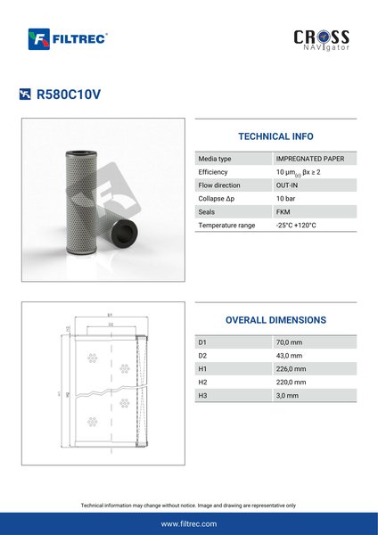 Engineered with their high performance media and a durable design, the R580C10V provides reliable and consistent performance over its lifespan, even in harsh operating environments. When you order from FilterFinder, you can trust that you are getting a reliable and high-quality replacement filter that will keep your system running smoothly.