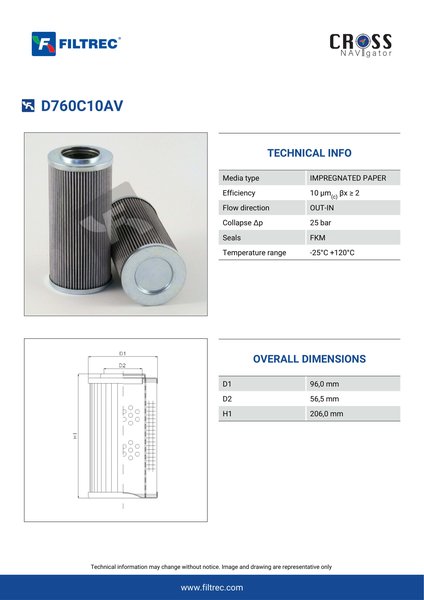 Engineered with their high performance media and a durable design, the D760C10AV provides reliable and consistent performance over its lifespan, even in harsh operating environments. When you order from FilterFinder, you can trust that you are getting a reliable and high-quality replacement filter that will keep your system running smoothly.