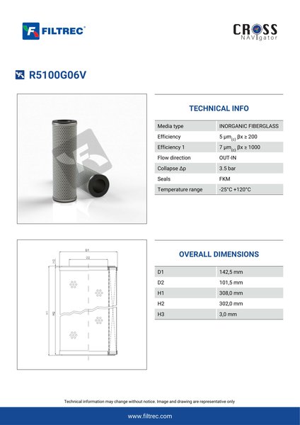 Genuine Filtrec R5100G06V. This Filtrec element is designed to meet or exceed the quality and performance of brand OEM’s ensuring superior filtration performance and long-lasting durability.