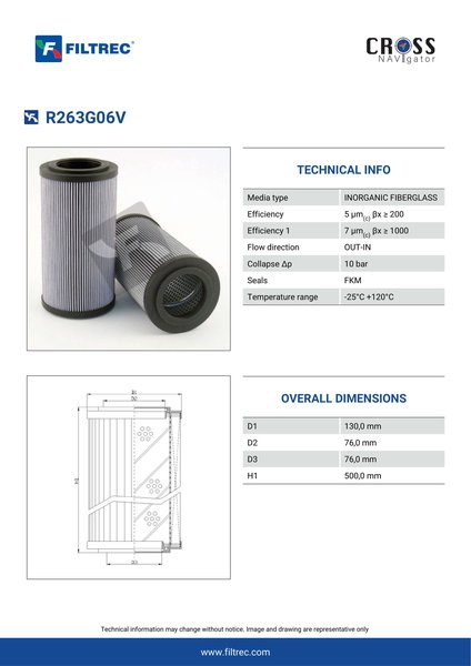 Engineered with their high performance media and a durable design, the R263G06V provides reliable and consistent performance over its lifespan, even in harsh operating environments. When you order from FilterFinder, you can trust that you are getting a reliable and high-quality replacement filter that will keep your system running smoothly.