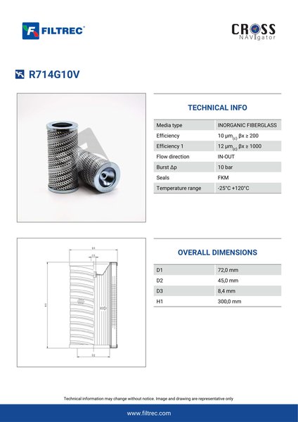 Genuine Filtrec R714G10V. This Filtrec element is designed to meet or exceed the quality and performance of brand OEM’s ensuring superior filtration performance and long-lasting durability.Engineered with their high performance media and a durable design, the R714G10V provides reliable and consistent performance over its lifespan, even in harsh operating environments. When you order from FilterFinder, you can trust that you are getting a reliable and high-quality replacement filter that will keep your system running smoothly.