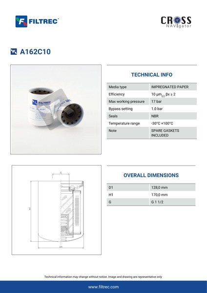 Genuine Filtrec A162C10. This Filtrec element is designed to meet or exceed the quality and performance of brand OEM’s ensuring superior filtration performance and long-lasting durability.