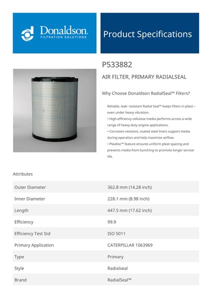 Why Choose Donaldson RadialSeal™ Filters?Reliable, leak- resistant Radial Seal™ keeps filters in place – even under heavy vibration.