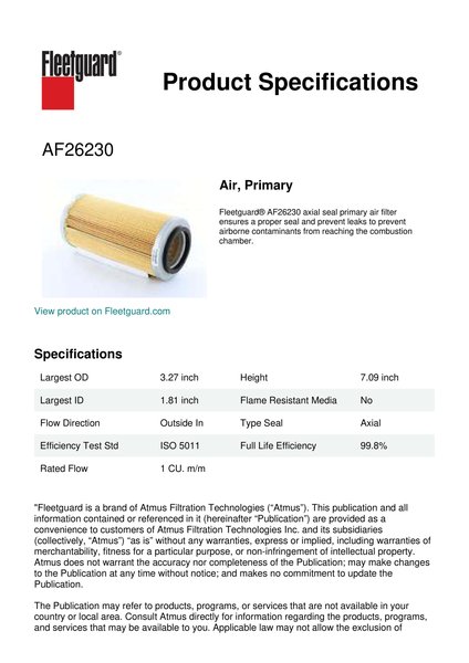 Fleetguard AF26230 Air, Primary