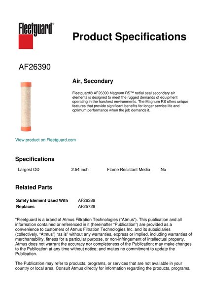 Fleetguard AF26390 Air, Secondary